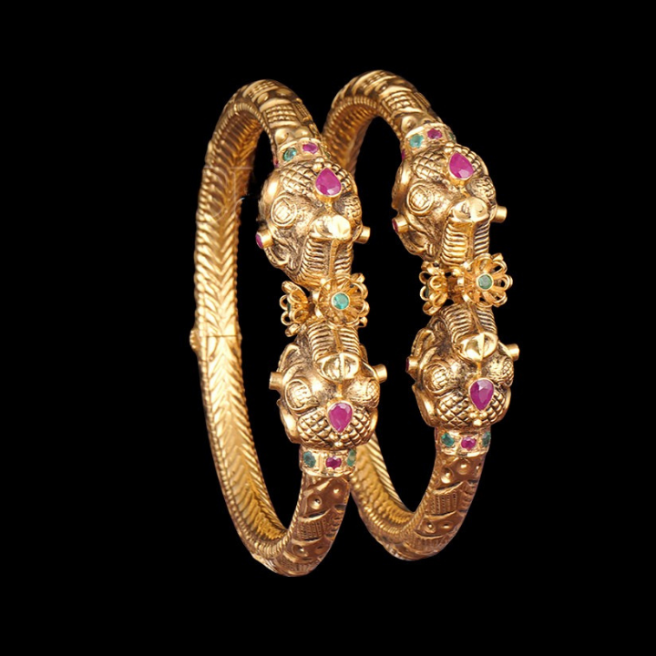 Nakshi Elegance Bangles 22K Gold Antique 37.11g #BNG00019